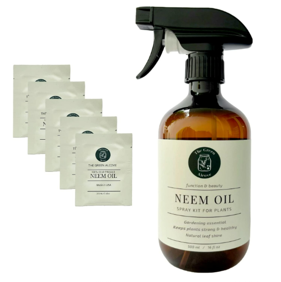 This neem oil spray kit makes up to five 16 oz bottles of 100% pure cold-pressed solution—an easy, natural way to protect and care for your indoor and outdoor plants.