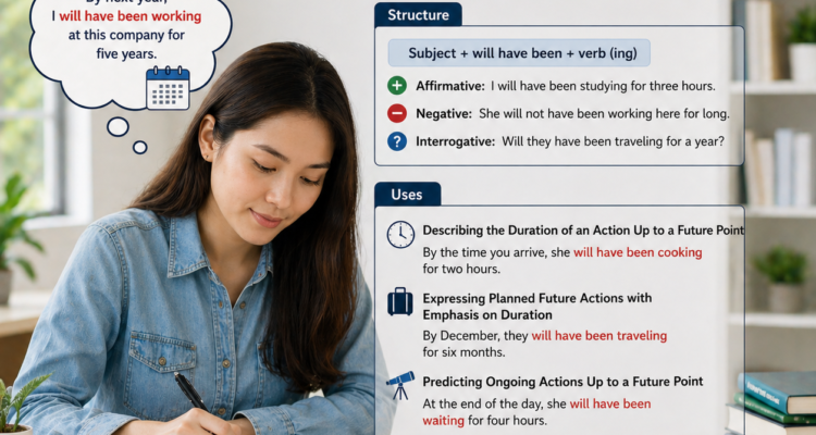 Learn the future perfect continuous tense with simple explanations, clear examples, and common mistakes to help you express duration up to a specific time in the future with confidence.
