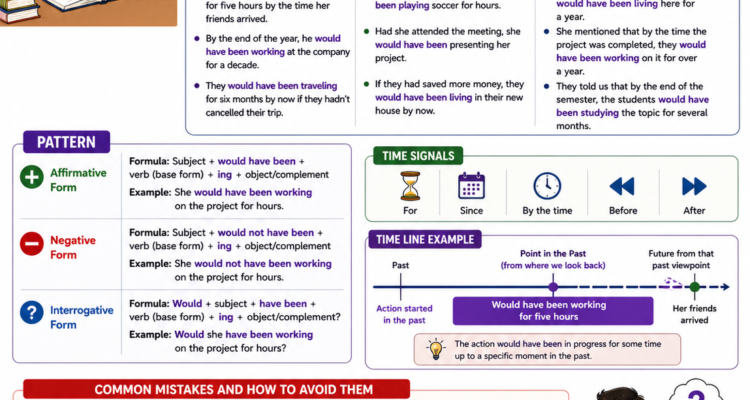 Learn the past future perfect continuous tense with clear explanations, practical examples, and common mistakes to help you express ongoing hypothetical actions in the past with confidence.